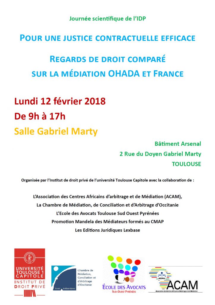 Organisée par l’institut de droit privé (IDP) de l’université Toulouse capitole (UTC) avec la collaboration de l’Association des Centres Africains d’Arbitrage et de Médiation (ACAM), la Chambre de Médiation, de Conciliation et d’Arbitrage d’Occitanie, l’Ecole des Avocats Toulouse Sud Ouest Pyrénées, la promotion Mandela des médiateurs formés au CMAP et le concours des Editions Juridiques Lexbase.
