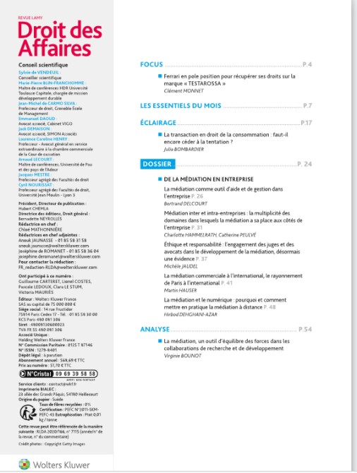 pouvez vous me dire comment se procurer « mediation-en-entreprise-numero-special-de-la-revue-lamy-droit-des-affaires-n-166-janvier-2021 »