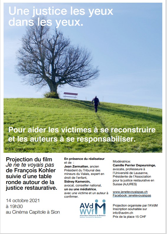 Projection du film : « Je ne te voyais pas » de François Kohler suivie d’une table ronde autour de la justice restaurative 14 octobre 2021 à 19h30 au Cinéma Capitole à Sion (Suisse)