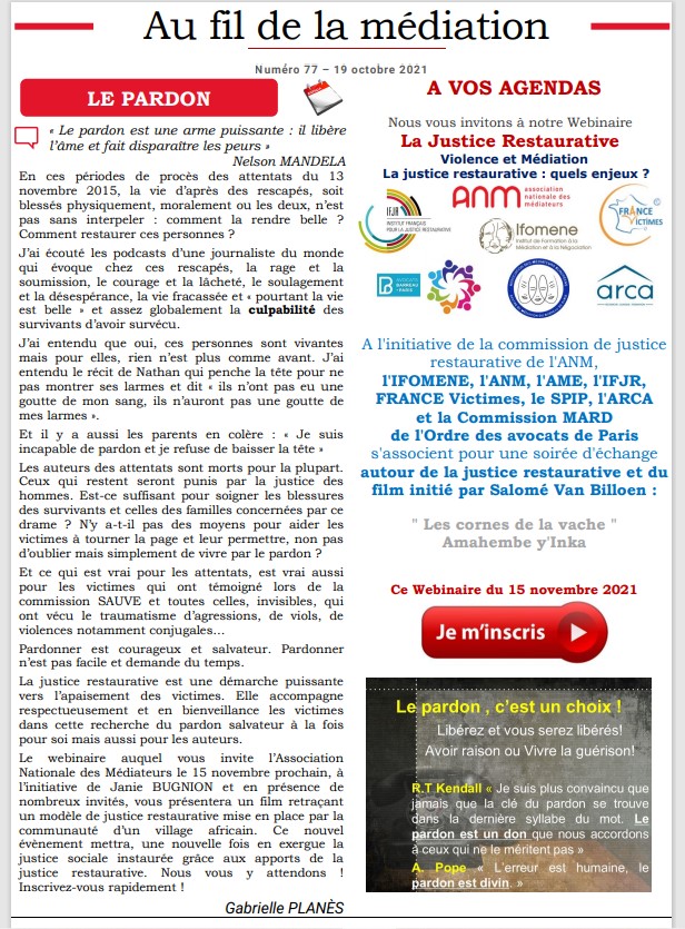 Inscription et programme sur https://eventos.um.es/69949/detail/v-jornadas-murcianas-de-mediacion.-i-seminario-transnacional-limediat.html
