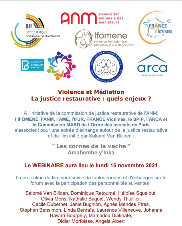 Programme et inscription sur https://www.linkedin.com/pulse/colloque-la-justice-restaurative-des-/?trackingId=1Vn1VwlRzvzUthe2o%2FHDGg%3D%3D&fbclid=IwAR3wCoFYN01sGKHyTbzs5Av8GpsW7ZgX3Xj2EMH38bYuUQs-fgP_JKINgbg