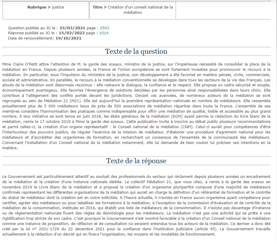 « La Médiation, l’un des modes de règlement des différends, en remplacement d’une procédure judiciaire (ou en cours de procédure), mérite toute notre attention tant elle peut être efficace et satisfaisante pour les parties qui n’ont ainsi pas le sentiment qu’un tiers (le tribunal) leur impose sa solution, qui n’est que rarement satisfaisante ne serait-ce que pour l’une des parties, et jamais pour les deux. Mais encore fallait-il ensuite que l’accord trouvé en médiation puisse avoir une valeur réelle et reconnue, si possible sans passer devant les tribunaux. C’est chose faite : l’accord de médiation rédigé par acte d’avocat constituera un titre exécutoire au sens légal du terme avec toutes les conséquences notamment pour l’éfficacite de son exécution » (Extrait de village-justice.com du 17/02/2022)