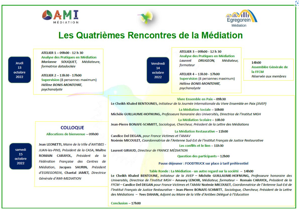 En savoir plus sur https://www.amimediation.fr/2022/03/04/les-4emes-rencontres-de-la-mediation-du-13-au-15-octobre-2022-dans-les-espaces-du-fort-carre-dantibes/