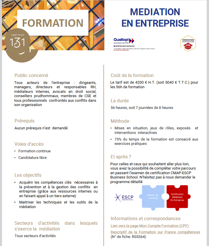 En savoir plus sur https://www.institut131.fr/wp-content/uploads/2021/10/Formation_Mediation_En_Entreprises_2023.pdf