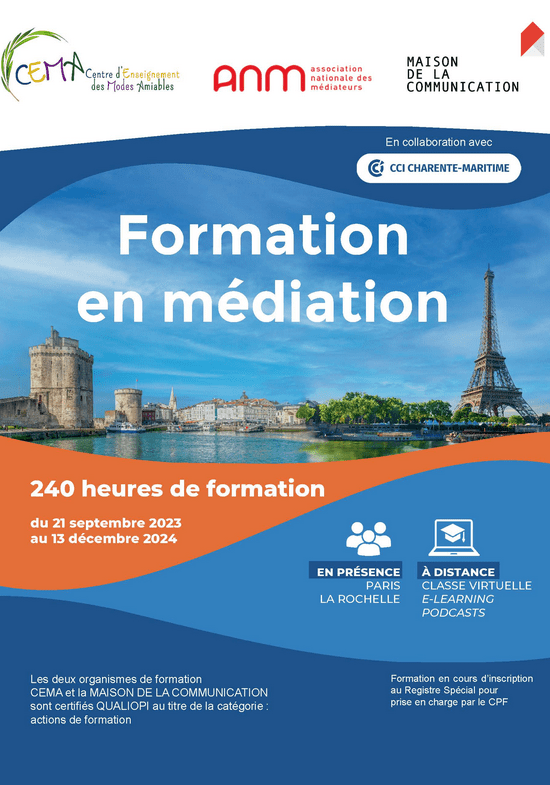 « La médiation est avant tout écoute et dialogue au service de l’humain. Elle va bien au-delà de la résolution des différends. Par sa dimension humaniste, la médiation soutient le lien social, prévient les différends et contribue à la réussite de la responsabilité sociétale des entreprises et des organisations (RSE-O). » (Extrait)