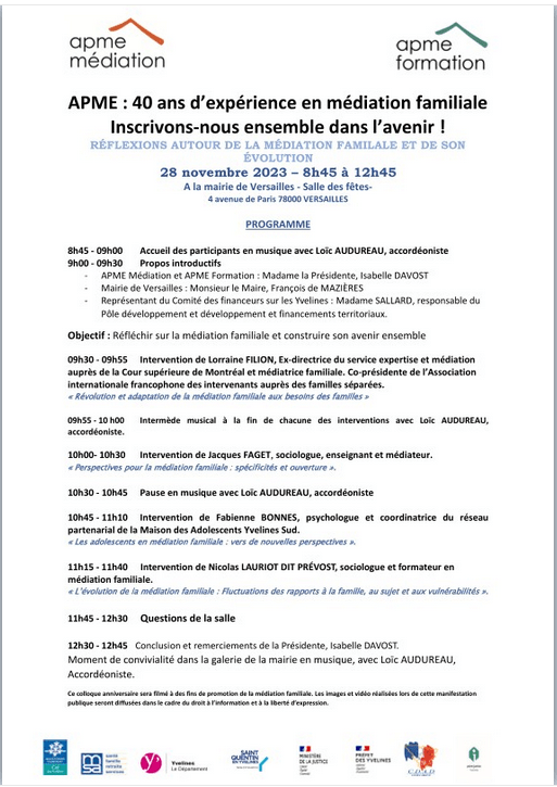 Outre les palabres gratuites, des formations initiales à la médiation agile ont débuté avec succès le 14 novembre à Strasbourg et se poursuivront en ligne le 16 janvier, à Lyon les 25 janvier et 21 mars, Paris le 13 février, Bordeaux le 14 mars etc. tandis que des formations d’approfondissement sont également prévues sur le Processwork, le Clean language, l’IFS, etc. Consultez la page du réseau des formateurs de la médiation agile : https://energetic.fr/mediation/ (Extrait)