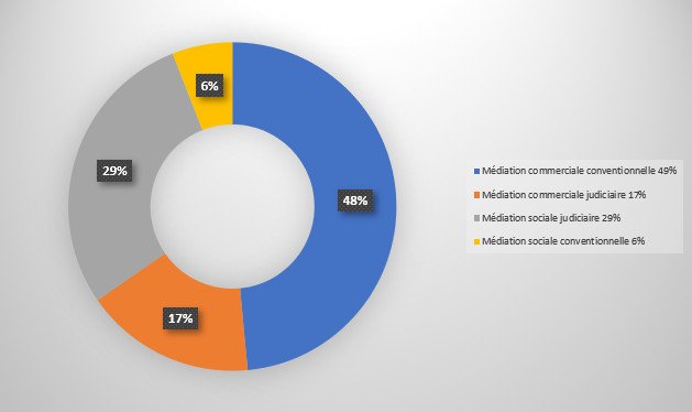 Constat : est illustrée ci-dessous la répartition des dossiers de médiation du CMAP selon que ce sont les parties qui décident d’elles-mêmes (médiation dite conventionnelle) ou sous l’impulsion du juge (médiation dite judiciaire) d‘entrer en médiation. Il en résulte que, dans les différends liés aux opérations de fusions-acquisitions, la majorité des dossiers viennent spontanément par les parties elles-mêmes ou leur avocat, sans recours au juge.