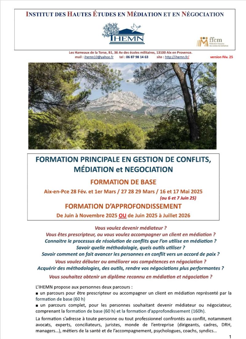 Programme et inscription sur https://www.mediationtransformative.org/formations