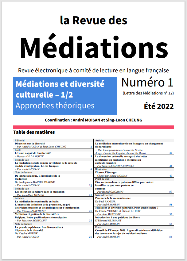 Vous pouvez consulter les numéros de la Revue des Médiations et les anciens numéros de la Lettre des Médiations (de 1à 11) sur : https://lettredesmediations.wordpress.com/category/revue-des-mediations-archives/