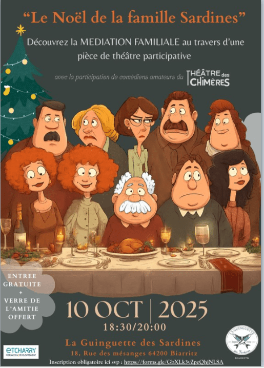 👉 « Le Noël de la famille Sardines », c’est une comédie pleine d’émotions où les spectateurs deviennent acteurs : chacun est invité à aider la famille Sardines à renouer le dialogue… grâce à la médiation familiale.
