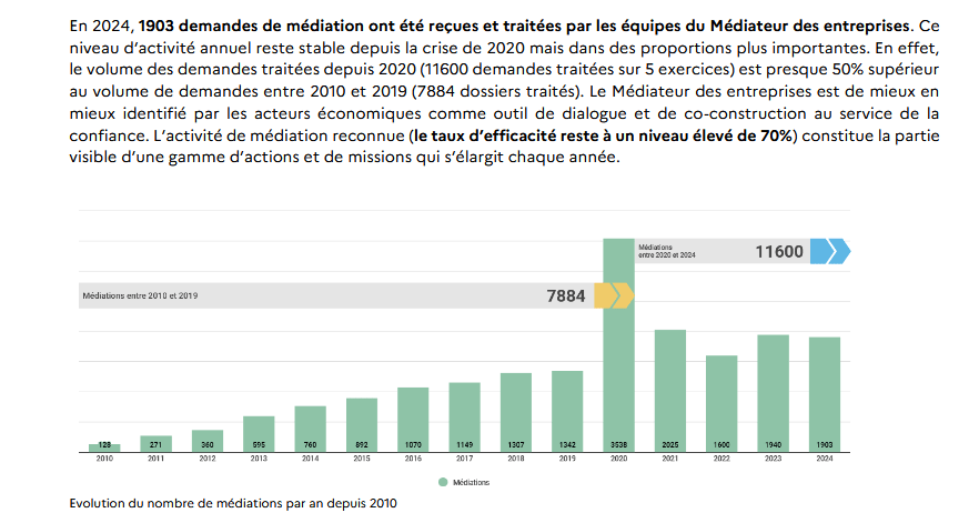 Ces volumes traduisent une augmentation de 4 % par rapport à 2023. (Extrait de clubdesmediateurs.fr)