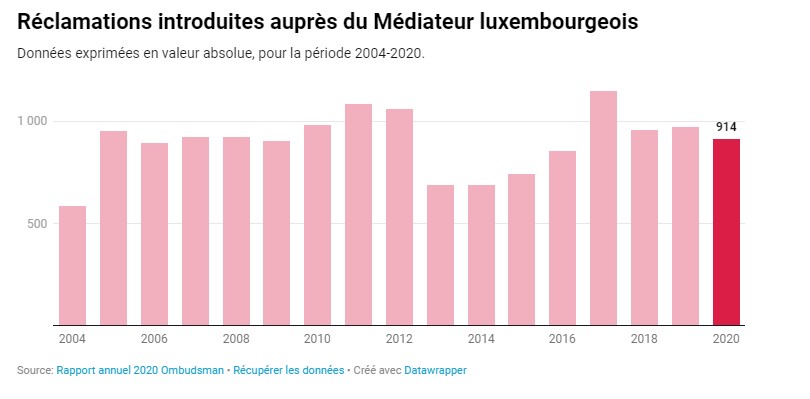 En 2017, sur les 1.149 réclamations introduites devant le médiateur, 833 ont été déclarées recevables. Après intervention du médiateur auprès de l’administration, 269 ont amené une correction totale, et 65 une correction partielle.