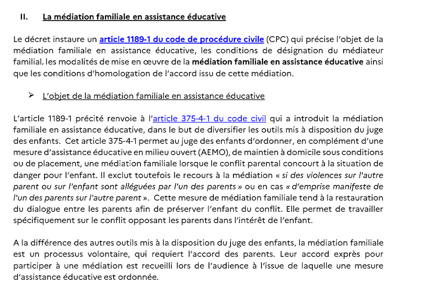 Il prévoit la prise en charge par le SPF Justice des médiations hors assistance judiciaire pour tous les couples avec enfant(s) qui se séparent ou sont déjà séparés ou divorcés.